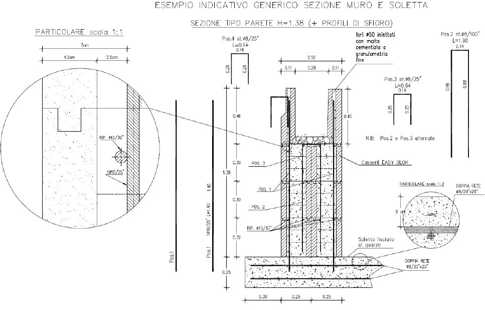 Per altezza della parete inferiore adattare di conseguenza le lunghezze dei ferri delle posizioni nn. 1-2.