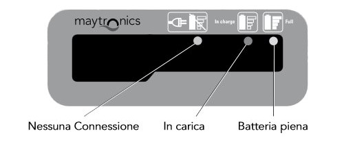 Quando la batteria è piena, l’indicatore LED verde “Batteria piena” si accende e rimane acceso.